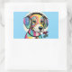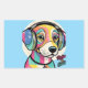 Este adesivo de desenho animado e colorido apresenta fones de ouvido bonitinhos vestindo filhotes. O pelo do filhote é uma mistura de cores brilhantes e padrões, dando-lhe um entalhe e uma vibração retrô. O adesivo é perfeito para adicionar um toque de personalidade e diversão aos seus pertences ou compartilhar com um amante de cachorro.