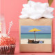 Guarda-chuva amarela na praia tropical em Phi Phi, Tailândia