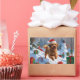 Adesivo Retangular Havanês correndo em neve com chapéu de Natal
