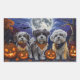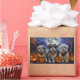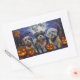 Libere o espírito assustador com esta design sombria do Dia das Bruxas apresentando um bando de cachorros sob um céu escuro e iluminado, cercado por morcegos voadores e abóboras brilhantes. Perfeito para aqueles que amam um toque de diversão terrível com seus amigos peludos!