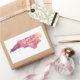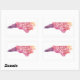 Este design apresenta um mapa de aquarelas do Estado norte-americano da Carolina do Norte com uma textura multicolorida, rosa, roxa, vermelha e laranja pintada com aquarela. O mapa é isolado em um fundo branco e o texto estilizado da "casa doce" é adicionado por cima.