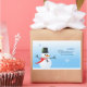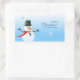 Um retângulo de Snowman com um bonitinho bonitinho a vestir um cachecol vermelho e um chapéu preto sobre um fundo azul esmaecido, que está a desfrutar da época de inverno à medida que os flocos de neve de diferentes formas continuam a cair. Ideal para o Natal ou qualquer outra ocasião. Disponível em outras formas também. © Manhã 6