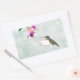 Os beija-flores com garganta rubi se reúnem ao longo da Costa do Golfo durante os meses de agosto e setembro, preparando sua migração anual para sua casa de inverno no México. Enquanto preparam buscam néctar flores cheias de plantas como a fuschia e a vinha de trompete para alimentá-las em sua viagem. Esta design apresenta uma rubi-garganta feminina a aproximar-se de um florescimento de fuschia rosa e roxo tentador.