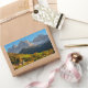 Adesivo Retangular Igreja e aldeia com paisagem montanhosa