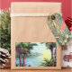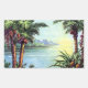 Uma arte de colheita de dominios públicos de uma ilha com palmeiras, flores, oceano e nascente do sol ou por meio de um livro de histórias de bíblias para crianças.