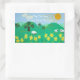 Adesivo Retangular ilustração cênica divertida de ovelhas bonitinhas