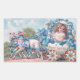 Adesivo Retangular Ilustração de Páscoa com Rapariga e Borregos