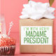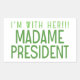 "Estou com ela! (EN) Senhora Presidente" é uma homenagem a Kamala Harris, o Democrata para Presidente nas Eleições de 2024. Criado pelo Monkey Business Graphic Design, 2024.