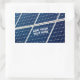Vista aproximada de um painel de energia solar. Dia ensolarado. Cor azul e branca. Um adesivo personalizável para qualquer um. Você pode alterar ou excluir o texto modelo.