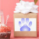 Uma pata de cão brilhante e transparente feita de vidro. Toda imagem digital que reproduz a textura do vidro.