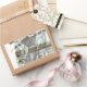 Aquarela na seda - equipamento manual; inverno na paisagem. Tempestade de neve na floresta no inverno. Artista de Zolotareva.