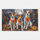 Libere o espírito assustador com esta design sombria do Dia das Bruxas apresentando um bando de cachorros sob um céu escuro e iluminado, cercado por morcegos voadores e abóboras brilhantes. Perfeito para aqueles que amam um toque de diversão terrível com seus amigos peludos!