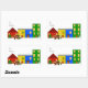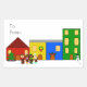 Add whimsical holiday charm with this 4.5" x 2.7" sheet of four rectangular gift label stickers featuring Jingle Claws peeking from inside a house in his train town, decorated buildings, carolers, and a snowman holding a candy cane. Each sticker is glossy and showcases hand-drawn digital art with simple font for a clean, playful look. "To/From" is set in a cheerful font for easy readability. Perfect for fans of unique holiday designs, gift-givers, cat lovers, and fans of unique holiday designs. Ideal for wrapping presents, party favors, or adding a fun seasonal touch to cards and packages.