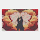 Uma silhueta romântica de um casal em um abraço, rodeado por um coração vibrante e pétalas vermelhas espalhadas. Perfeito para convites de casamento e celebrações do Dia dos Namorados, capturando a essência do amor e da união