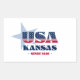 O adesivo do Kansas. Esta design captura o espírito da soberania do Kansas em 1861 com texto ousado e as cores vibrantes da bandeira americana.