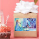 Colorida, branca e romântica, pintura aquosa em cor azul-clara, rosa, vermelha, roxa, violeta, branca por Alessandro Lumini 1989 - Vivien , esta misteriosa fêmea deu a Arthur sua espada, Excalibur. Ela roubou Lancelot quando ele era criança e o curou quando ele ficou louco. Ela pode ser uma divindade do lago Celta na origem, talvez do mesmo tipo que as fadas do lago Gwagged - no folclore do galês moderno. Vivien pode muito bem ter sido a Dama do Lago nas Lendas e histórias de Arthurian. Ela, às vezes chamada Nineve, Nimue, Niniane etc., é mais conhecida como a mulher que selou Merlin em uma caverna ou em uma árvore.