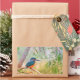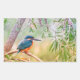 Um rei-rei azul vívido fotografado na natureza tocando em um galho de árvore.