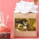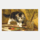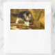 Stickers com a pintura a óleo de Henriëtte Ronner-Knip The Young Artist (1821-1909). Um gatinho preto e branco brinca com pintura e dois pincéis. Um presente adorável para amantes de gatos e entusiastas do Romantismo.