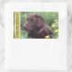 Este adesivo retangular é adornado com uma fotografia de perto de um labrador de chocolate que está deitado em um remendo da Califórnia. Preencha os campos modelo com suas palavras ou aspas, remova o bar de texto e texto ou clique em Personalizá-lo! para selecionar um estilo de fonte, tamanho e cor que você quiser. Mude a foto do laboratório de chocolate com a foto do seu laboratório/cão ou do cachorro de um amigo se estiver dando como presente. Em personalizar, em Escolha seu estilo e tamanho, você pode selecionar outras formas como redonda, oval, quadrada etc.