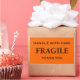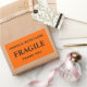 Vinhetas com: Frágil. Manipule com cuidado. Obrigado. Texto preto sobre fundo laranja. Personalize com suas informações usando os modelos fáceis. A cor da fonte, o estilo da fonte, o tamanho da fonte e a cor de fundo laranja são personalizáveis.
