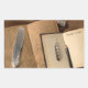 Adesivo Retangular Livros antigos com lápis, planalto de penas