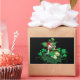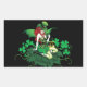 Fada Irlandesa de Cabelo Vermelho, toda apunhalada em verde para Ruas. Dia dos Patricks. Ela tem sua pote de ouro e cobertores verdes ao seu redor.