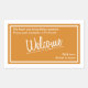 Este retangular desajeitado da vila, adesivo de casamento de sacola de presentes, apresenta um texto de boas-vindas inclinado em branco, juntamente com o seu texto branco personalizado sobre um fundo laranja tangerino. Depois de um longo dia dirigindo ou voando para o seu casamento, recebam seus convidados fora da cidade com um cheio de boas-vindas de lanches, bebidas e lembranças locais. Este adesivo brilhante na frente da bolsa de boas-vindas dá um toque encantador. Coordenação de produtos disponíveis. Deseja alterar o estilo da fonte ou a cor ou o tamanho do texto? Clique no botão laranja "Personalizar!" na design. Isso permitirá que você personalize seu design ainda mais.