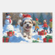 Adesivo Retangular Malti Tzu Correndo na Neve com Chapéu de Natal