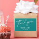 Adesivo Retangular Manuscrito Simples Contemporâneo Obrigado Teal