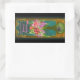 Vintage fenda, adesivo de propaganda de perfume apresentando um vaso de rosas e várias outras flores. Diz "buquê d' oriente" e é enquadrado com um bonito pergaminho dourado. Em cores ricas de ouro, preto verde, rosa e roxo.
