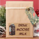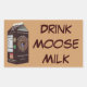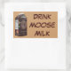 Uma caixa de leite de uma fazenda leiteira mundial famosa e inteiramente mítica de Matanuska Moose milk no Alaska; não muito longe de Anchorage. O slogan "Beba leite de alce" também é exibido. A imagem do logótipo apresenta uma ordenha manual leiteira Matilda, a primeira alça leiteira de fazenda. Acreditem ou não que há fábricas de alce; um pequeno número na Rússia e um na Suecia. O leite de alce é cultivado comercialmente na Rússia. Um vitelo de alce de nascer fazenda é retirado da mãe nas 2 a 3 horas seguintes ao nascimento e é criado por pessoas. É primeiro alimentado a garrafa com um substituto do leite, e depois alimentado a partir de um balde. Os animais imprimem e tornam-se ligados aos seres humanos. O leite é rico em gordura-butírica (10%) e sólidos (21,5%), segundo dados coletados sobre a alce russa; a pesquisa sobre o leite-alce americano está em estado menos avançado do que na Rússia, mas parece indicar que a alça americana tem até concentrações mais alto de sólidos no leite. Diz-se que o leite de alce é um pouco salgado e amargo, com uma sugestão de agulhas de pinho ou de pinto. O leite de alce é cultivado comercialmente na Rússia. Um vitelo de alce de nascer fazenda é retirado da mãe nas 2 a 3 horas seguintes ao nascimento e é criado por pessoas. É primeiro alimentado a garrafa com um substituto do leite, e depois alimentado a partir de um balde. Os animais imprimem e tornam-se ligados aos seres humanos. Tal como acontece com os bovinos leiteiros, os vitelos são retirados das suas mães após um curto período de tempo. Os russos dizem que as alças reconhecem rapidamente as leiteiras como substitutas como seus vitelos substitutos. Nesse ponto são liberados para a floresta, mas visitam a fazenda todos os dias para serem ordenhados durante o período de lactação (normalmente até setembro ou outubro). Durante o inverno, os animais vagueiam por toda a floresta circundante. Mas geralmente não se afastam muito, mas passam muito tempo em matas próximas, onde as árvores são cortadas, alimentando-se de subprodutos de operações madeireiras. E eles conhecem a fazenda como o lugar para rações diárias de aveia, e como um lugar seguro para dar à luz a sua juventude. Um sanatório russo serve leite alado aos residentes, acreditando que ajuda a se recuperar da doença ou a administrar doenças crônicas de forma mais eficaz. Alguns investigadores russos recomendaram que o leite de alce pudesse ser utilizado para a prevenção de doenças gastroenterológicas em crianças. A fazenda Elk (Moose são chamados Elk in Europe) House (Älgens Hus), em Bjurholm, considera-se que a Suecia é o único produtor mundial de queijo alce. O queijo vende cerca de 500 dólares por libra. O restaurante de Algens Hus oferece pratos de queijo alce. Queijo comum com pão ou biscoitos, ou melhor ainda, musse de alce congelado. Melhor servido com framboesas.