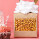 Este produto é fabricado a partir de um padrão de azulejos quadrados de mosaicos texturizados que consistem principalmente em tons quentes de ferrugem, laranja e marrom. Este abstrato único design de "água" tem a aparência de azulejos de banheiro úmidos e brilhantes.
