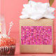 Este produto é fabricado a partir de um padrão de azulejos quadrados de mosaicos texturizados, constituídos principalmente por tons ricos de rosa, tais como coral, rosa, salmão, rosa quente e rosa chocante. Este abstrato único design de "água" tem a aparência de azulejos de banheiro úmidos e brilhantes.