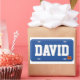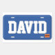 Criar as etiquetas personalizadas para os miúdos que amam carros com o estes fáceis personalizar etiquetas. Características deste design uma matrícula azul com letras brancas e uma etiqueta alaranjada pequena do registo no canto. Use o campo do modelo para preencher seu próprio nome.