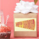 Feliz aniversário é soletrado em vermelho num mega telefone amarelo, é impresso em adesivos amarelos. A cor de fundo do amarelo claro pode ser personalizada.