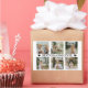 Celebre uma avó incrível com este adesivo de colagem de fotos personalizado. Com suas fotos favoritas dispostas em um design de colagem caloroso, o adesivo exibe a mensagem “Melhor Avó do Mundo” no centro, acentuada com dois ícones de coração.