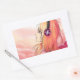 Adesivo Retangular Menina de animação bonito no pôr do sol