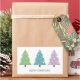Mande votos animados para um Feliz Natal com este adesivo com três árvores coloridas. Adicione-o a sacos de presentes, envelopes de cartão-presente ou pacotes.