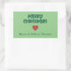 Vinheta retangular Mínima e Simples Verde e Vermelho "Feliz Natal" Um adesivo de mensagem de Natal simples, mas sincero, em vermelho e verde clássicos. Personalize este adesivo com nomes próprios ou sobrenome da família.