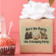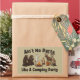 As melhores festas estão acampando na floresta! Esta design engraçada mostra ursos, alces, esquilos, coelhos e outros animais festejando, fumando, cervejas de bebendo e marshmallows assados em torno de um fogo no acampamento.