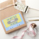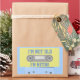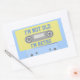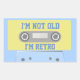 Os adesivos com o slogan "Não sou velho, sou retrô" em fita cassete azul e verde.