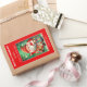 Um adesivo bonito de Natal Feriados com ilustração de Papais noeis com um ajudante de gatinho em cores ousadas festivas.