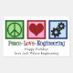 Um adesivo legal de férias com um sinal de paz, coração e engrenagens. Bons adesivos de Natal personalizáveis para uma empresa de engenharia. Engenharia do Amor pela Paz.
