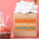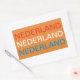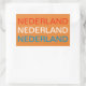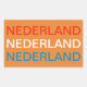 Leuke sticker met de tekst Nederland in rood, wit, blauw op een oranje achtergrond.