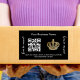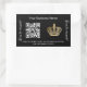 Adesivo Retangular Nome comercial preto Coroa dourada código qr