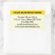 Enfatize o nome da sua empresa. Destaque-o. Adesivo personalizável com o seu nome comercial destacado. Você pode usá-lo como material de marketing para anunciar sua empresa ou para promover seu nome de marca a clientes ou clientes. adesivo personalizável que você pode usar para criar reconhecimento de nome de marca. Você também pode usá-lo como acessório de materiais de embalagem de produtos. Designs são textos pretos de nome comercial com realce amarelo, textos pretos sobre fundo amarelo claro e forma retangular. Para personalizar este adesivo, digite o nome da sua empresa ou empresa, endereço, número de telefone, email e site ou página de mídia social. Verifique a aparência após digitar textos. Se a aparência lhe agrada, você pode colocar seu pedido agora. Se precisar redimensionar e mover os textos para o ajustado neste adesivo, mude a ferramenta design. Você também pode fazer outras alterações de acordo com a aparência preferida na ferramenta design, como alterar a cor de realce, a cor do plano de fundo, a cor da fonte e o estilo da fonte.