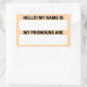 Adesivo Retangular Nome de Champanhe Profundo e Rótulos Pronoun