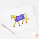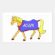Um belo adesivo de pônei de desenho animado. O nome pode ser personalizado ou mudar para um texto de sua própria escolha. Pônea de palomino com mano amarelo e cauda vestindo um tapete estável azul tradicional com borda vermelha.