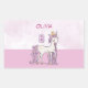 Adesivo Retangular Nome Personalizado 8º Cavalo Rosa de Aniversário c