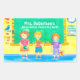 Um adesivo divertido da turma de um professor com três crianças em uma sala de aula pediu para ficar em frente à aula segurando as letras para soletrar "gato ilustrado com aquarela. Você pode personalizar o nome e a mensagem do professor para ajustado de suas necessidades.